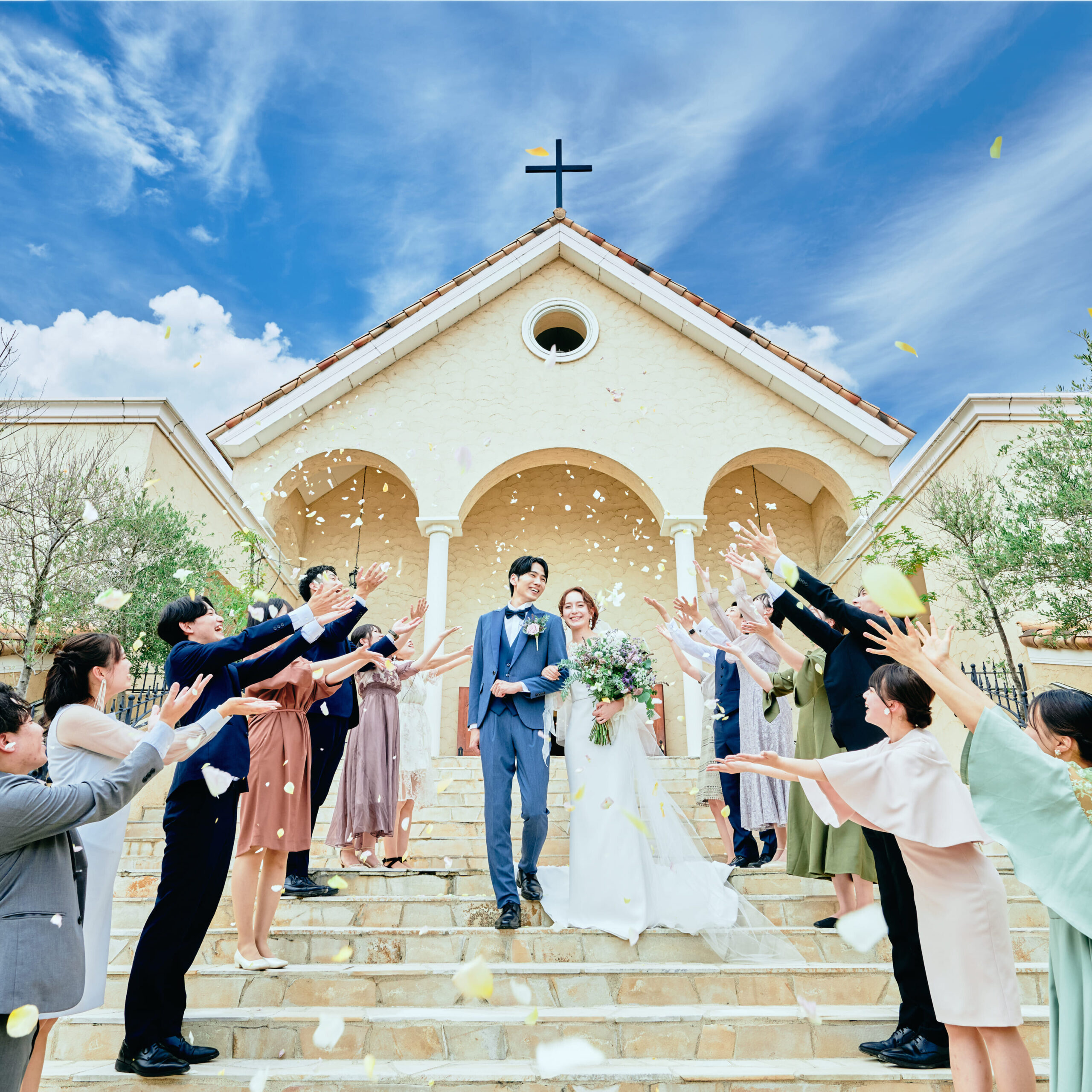 「大階段でのフラワーシャワーは映画のワンシーンのようだった」と口コミでも好評です。