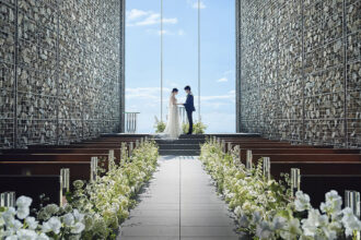 チャペルはオーシャンビューで、バージンロードの先に広がる海が誓いの瞬間をよりドラマティックに演出。